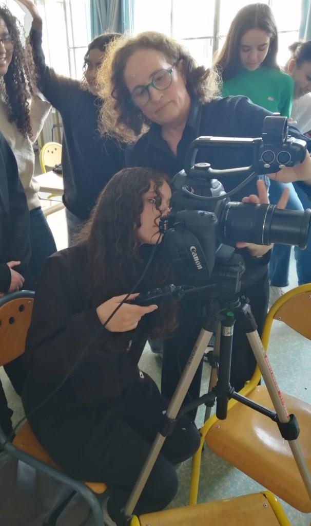 Atelier « La fabrique du témoignage » – collège Hélène Boucher – Paris – Conce Codina, intervenante avec des élèves de 3ème, 2024.